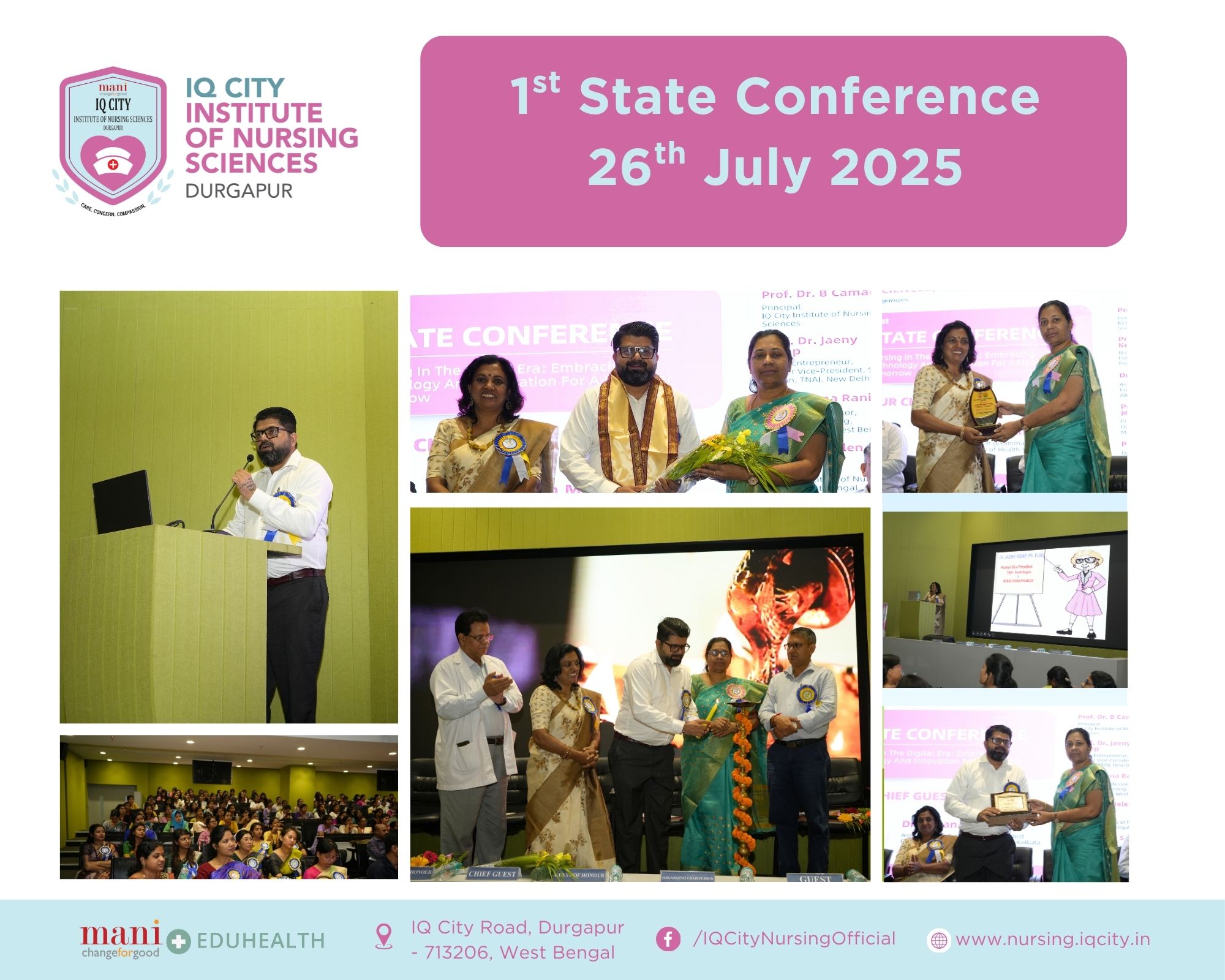 IQ City Institute of Nursing Sciences proudly organized its First State Conference on “Nursing in the Digital Era: Embracing Technology & Innovation for a Healthier Tomorrow” on 26th July 2025 at the C.V. Raman Lecture Theatre, IQ City Medical College Auditorium, under the dynamic leadership of Principal Prof. Dr. B. Camala.